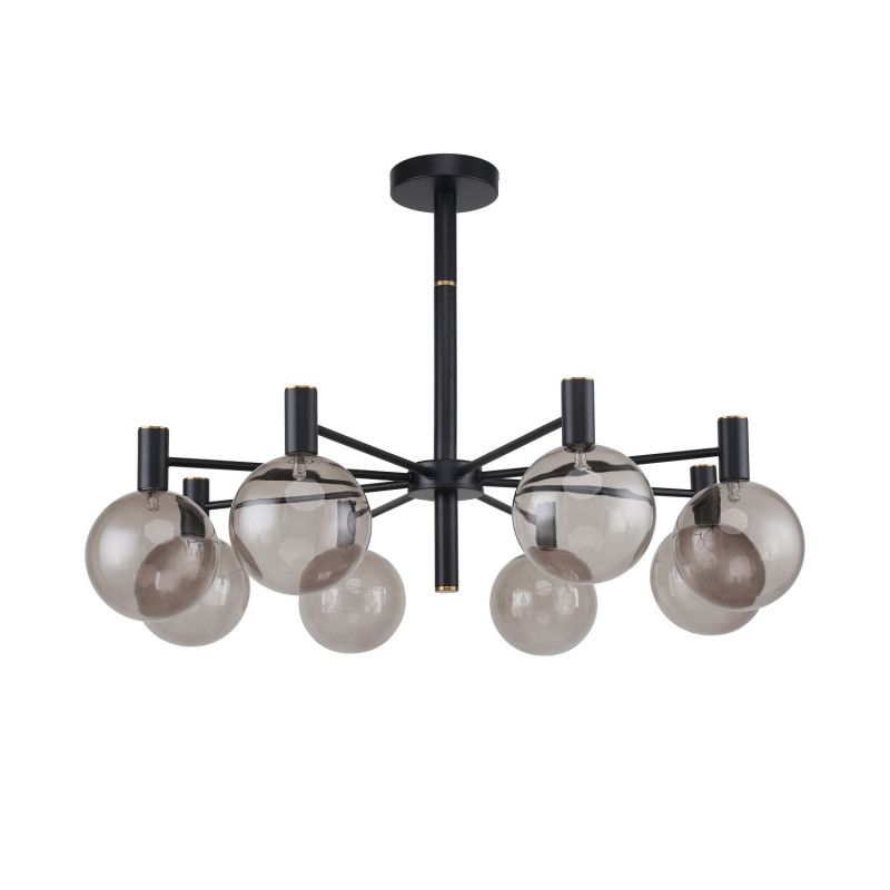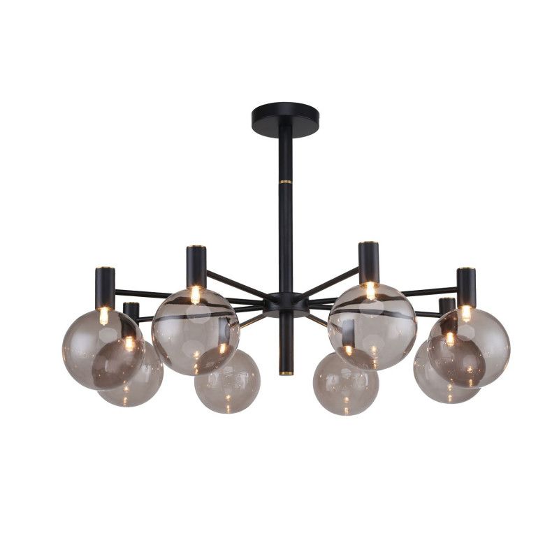 Люстра на штанге Favourite Eternity 2766-8P создаёт в гостиной атмосферу спокойного света. Восемь стеклянных шаров из серого стекла направлены вниз, лучи мягко скользят по поверхностям, выделяя зону общения и отдыха. Черная металлическая арматура образует четкий контраст со стеклом, линия силуэта остаётся легкой и сдержанной, стиль современный.