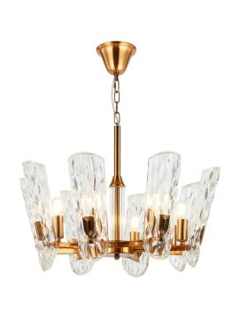 Материалы и цветовая палитра универсальны и практичны: металл цвета золота, долговечное стекло белого оттенка, форма плафонов конусная для направленного и визуально аккуратного светового пятна на столе или кухонном острове. Крепление на потолок, формат на штанге устойчив и визуально аккуратен в современных интерьерах.