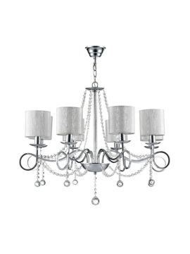 Металлическая арматура цвета бронза, открытые патроны без плафонов и направленный вниз свет создают чистый, выразительный образ. Цоколь E27, тип ламп - накаливания: до 40 Вт на одну, суммарная мощность до 400 Вт. Рекомендуемая площадь освещения до 27 м² при стандартном напряжении 220 В. Степень защиты IP20. Монтаж на потолок, совместима с натяжными потолками.