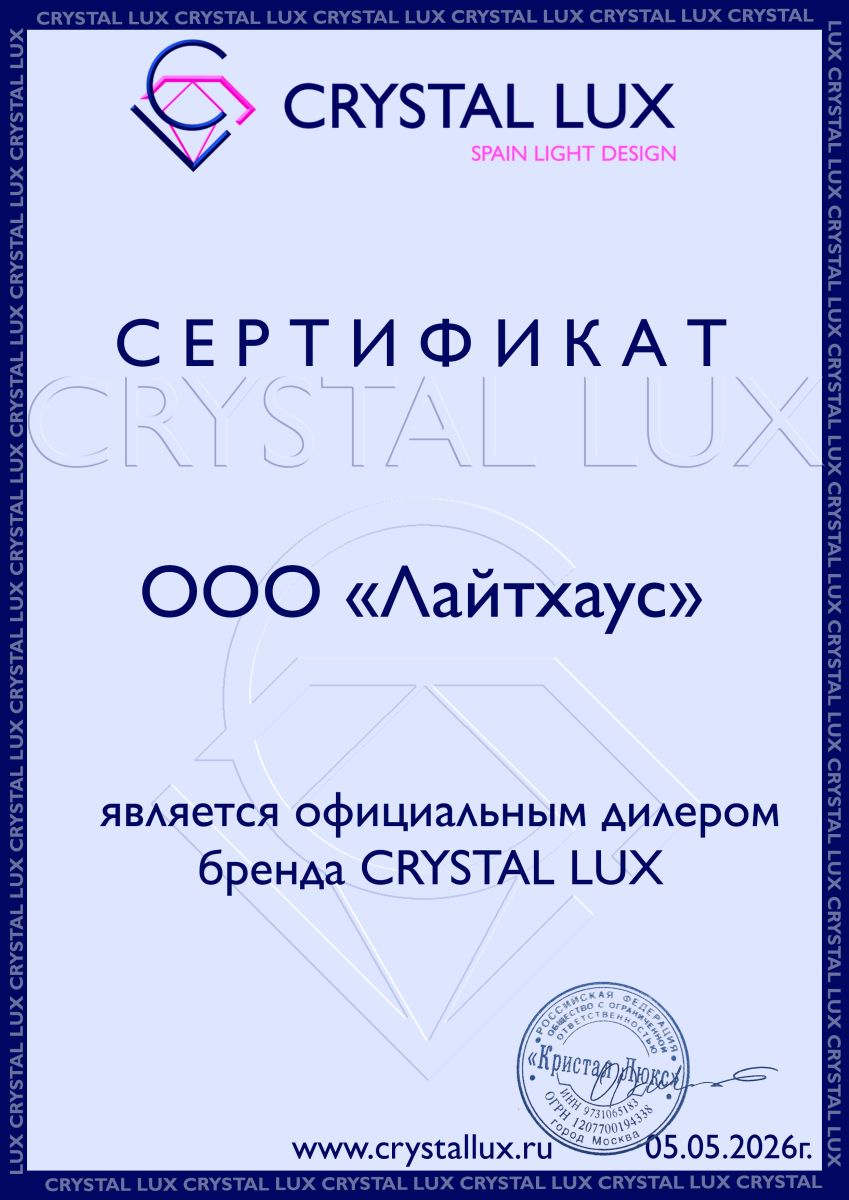 В каталоге имеется хороший выбор товаров от производителя Crystal Lux. Доставка будет обеспечена незамедлительно.