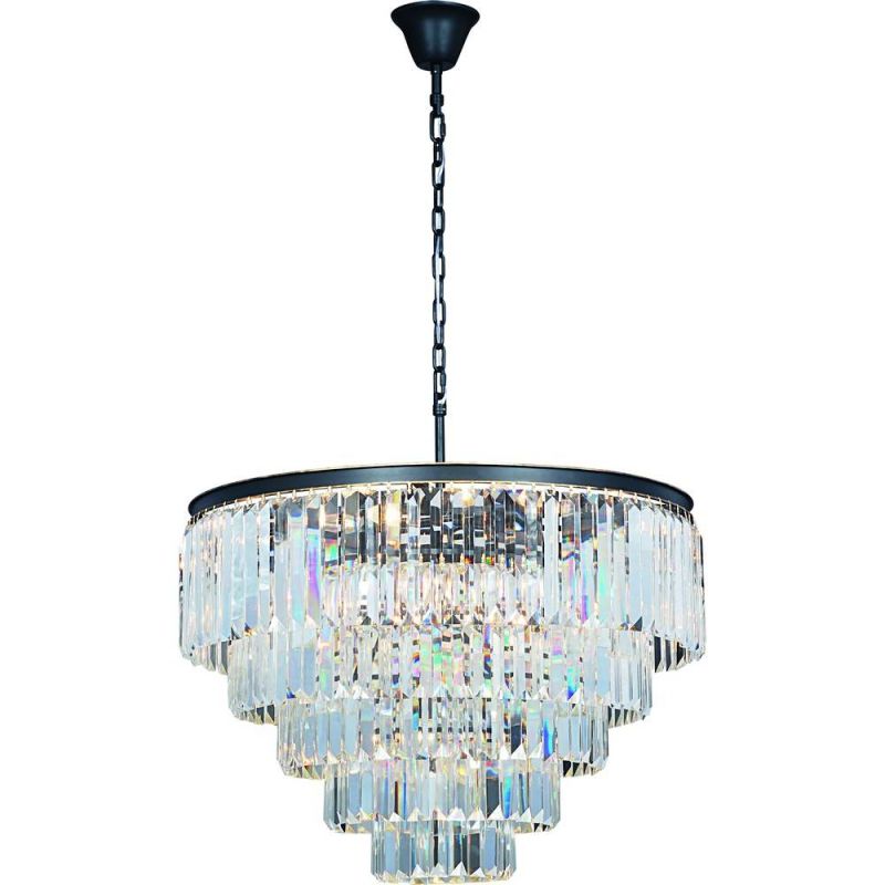 Диаметр 800 мм и высота 760 мм подчеркивают масштаб, светового ресурса хватает на помещение до 26 м². Тринадцать ламп с цоколем E14 по 40 Вт суммарно дают 520 Вт яркого, комфортного света. Направление вниз формирует ясное освещение зоны под люстрой, а прозрачный хрустальный декор красиво рассеивает лучи.