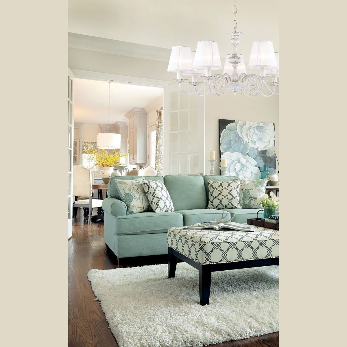 - - Тканевые белые абажуры и белая металлическая арматура. Чистая, светлая палитра.