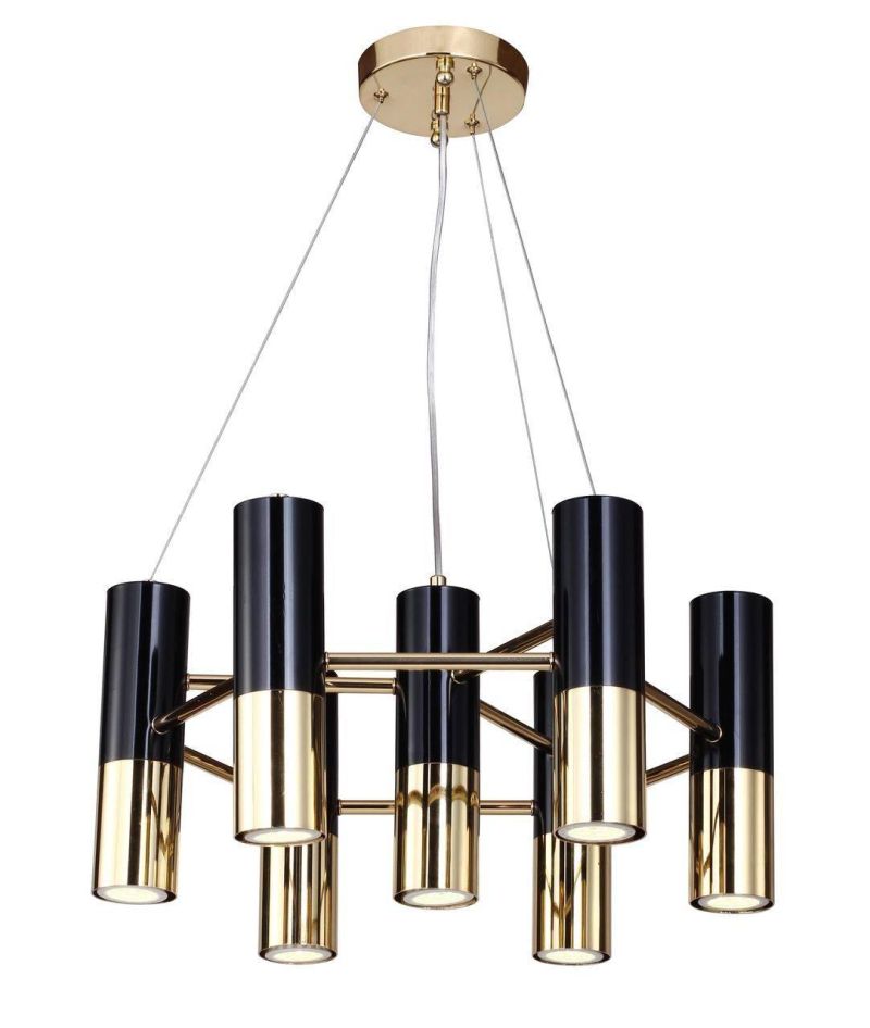 Подвесная люстра Favourite Ultra 1600-7P - акцент для современной гостиной. Семь цилиндрических плафонов из металла в золотом цвете направляют свет вниз, формируя четкое освещение обеденной зоны или диванной группы.