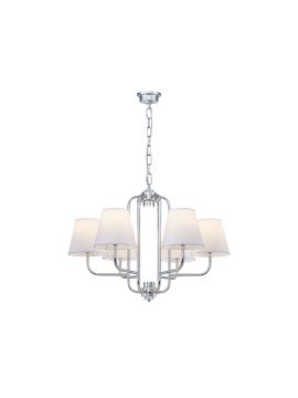 Диаметр 570 мм и высота 610 мм выглядят гармонично в средних по размеру комнатах. Свет равномерно раскрывается на площади до 18 м², особенно благородно звучит с лампами накаливания E14. При необходимости яркость легко настроить, подбирая мощность до 60 Вт на каждый из шести источников, суммарно до 360 Вт. Напряжение 230 В, степень защиты IP20 для сухих интерьеров.