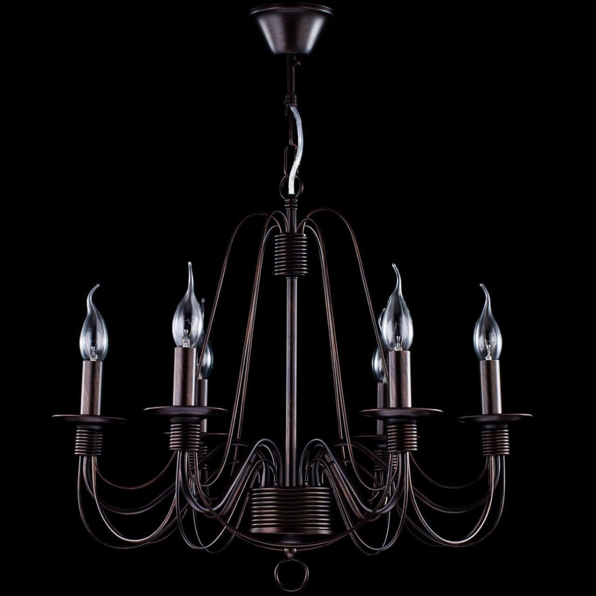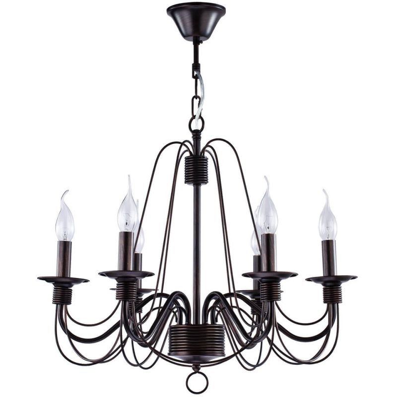 Подвесная люстра Freya Velia FR2046-PL-06-BR — это спокойная графика черного металла и теплое сияние классических ламп. Шесть изящных рожков без плафонов направлены вверх, напоминая свечи, и мягко вычерчивают силуэт потолка. В спальне такая люстра собирает пространство, делает его камерным и уютным, поддерживает атмосферу вечернего отдыха.