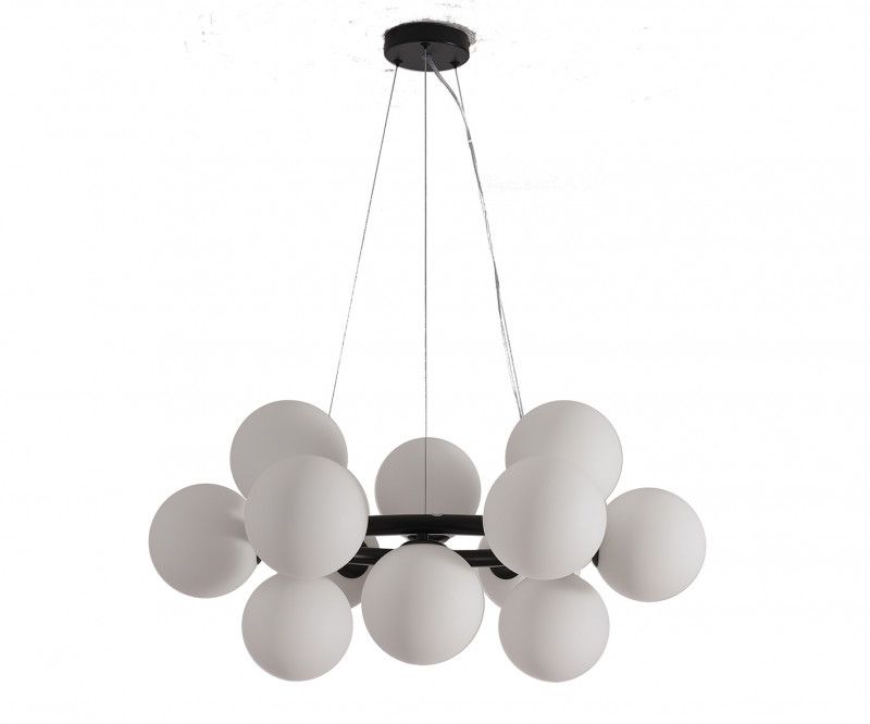 Подвесная люстра Kink Light Сида 07508-12,19 создана для современных гостиных: графичная арматура цвета черный и белые стеклянные шары формируют выразительный центр комнаты. Двенадцать плафонов направлены в стороны, свет распределяется мягко и равномерно.