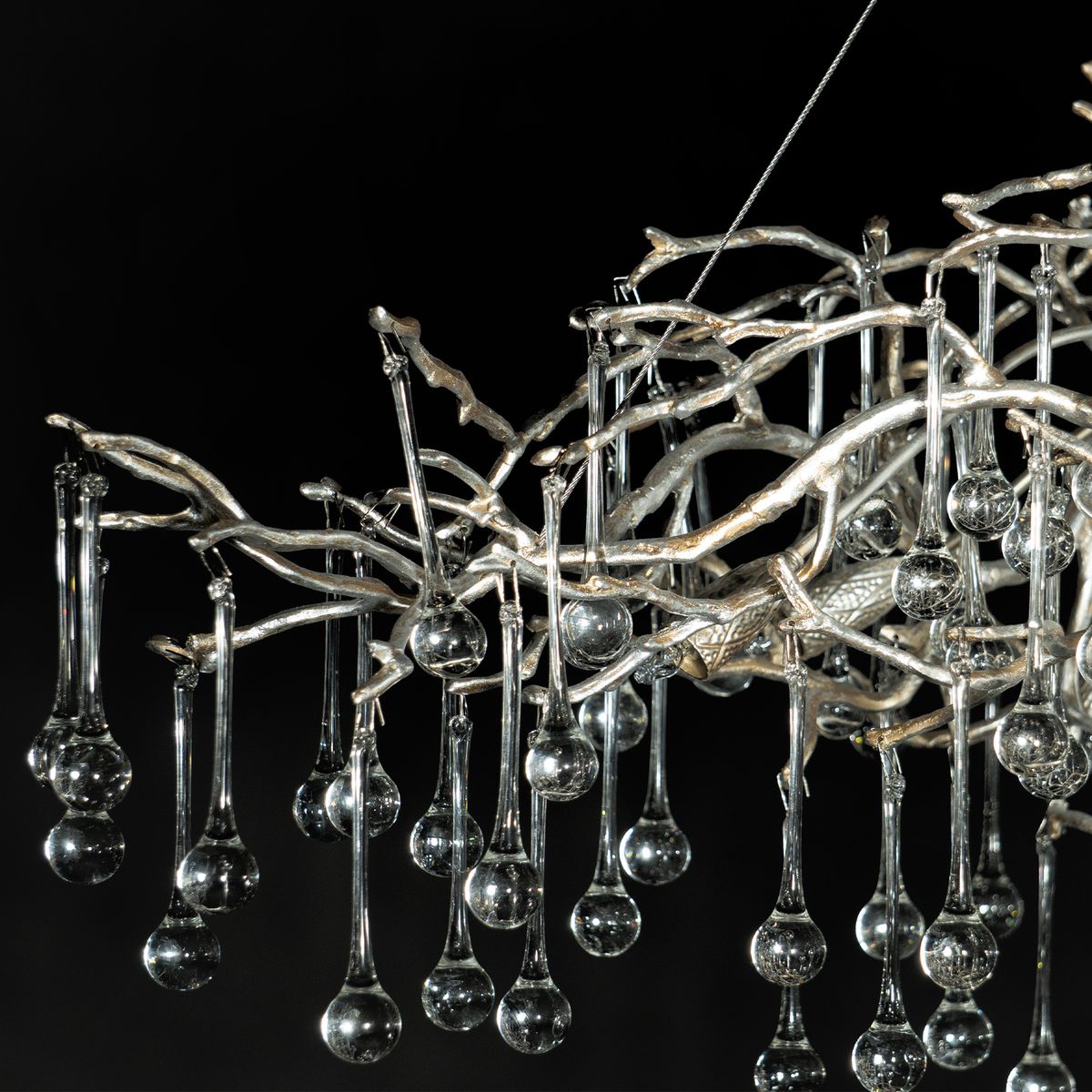 Габариты внушительные: длина 1800 мм, ширина 900 мм, высота 650 мм. Свет направлен вниз, поэтому модель уместна над большим столом или в центре зоны отдыха. Источник света раздельный, 18 ламп с цоколем G9 по 5 Вт каждая, суммарно 90 Вт. Питание от сети 220 В. При необходимости можно подобрать лампы G9 с нужной цветовой температурой и световым потоком.