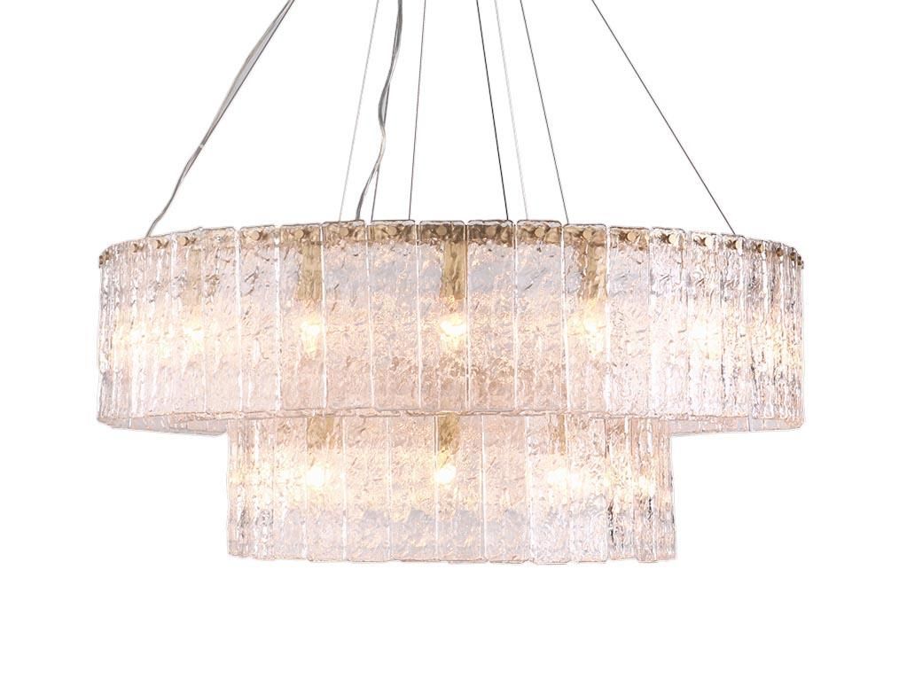 Светотехнические параметры впечатляют. Установка рассчитана на 24 лампы с цоколем E14 по 60 Вт. Общая мощность 1440 Вт, освещение до 72 м². Направление света вниз, хрустальные грани создают выразительные блики и добавляют глубину освещению без резкости. Питание 230 В. Степень защиты IP20 подходит для сухих помещений жилых и общественных интерьеров.