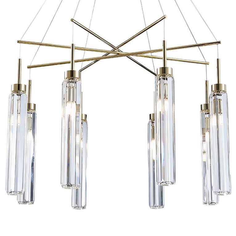 Цилиндрическая форма плафонов создает ясный ритм, прозрачность стекла помогает свету раскрывать фактуру дерева, камня и тканей. В гостиной люстра выразительна над журнальным столом или в центре зоны отдыха: вечером рождается камерная, уютная атмосфера, днем конструкция кажется легкой и воздушной. Подвесная люстра Newport 4524+4/S gold М0066077 деликатно подчеркивает интерьер в стиле модерн, оставаясь функциональной и честной в каждом элементе.