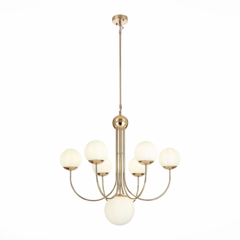 Подвесная люстра ST Luce Avellino SL1504.203.07 отвечает признанным стандартам качества: лампы накаливания, цоколь E27, 7 ламп, цвет арматуры золото. Этот осветительный прибор подходит для гостиной в стиле модерн. Качество, которым отличается модель, гарантирует длительный срок службы. Устройство обеспечивает охват площади в 21 кв.м.