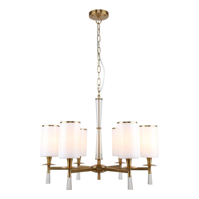 Подвесная люстра Stilfort Leader 1047/05/06P создаёт атмосферу спокойствия и камерного тепла. Шесть цилиндрических плафонов из бежевого стекла направлены вверх, свет отражается от потолка и возвращается мягким ореолом, без резких бликов. Тёплый оттенок стекла поддержан арматурой цвета золота, линии изящные и уверенные, классический силуэт выглядит благородно и ненавязчиво.