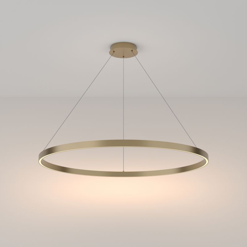 Представляем вашему вниманию подвесной светильник Maytoni Rim MOD058PL-L54BS3K - идеальное освещение для вашей гостиной. Отличительной чертой данной модели является ее дизайн в современном стиле. Плафон и арматура выполнены из алюминия цвета латунь, что придает изделию особенную элегантность. Плафон светильника имеет форму кольца и направлен вниз, что гарантирует равномерное освещение. Подвесной светильник Maytoni Rim MOD058PL-L54BS3K использует светодиодную лампу мощностью 61 Вт, создающую теплый белый свет с цветовой температурой 3000K. К тому же, светильник подходит для использования с натяжными потолками и работает мощным световым потоком в 3500 лм. Купив эту модель, вы получаете гарантию на 2 года от производителя Maytoni.