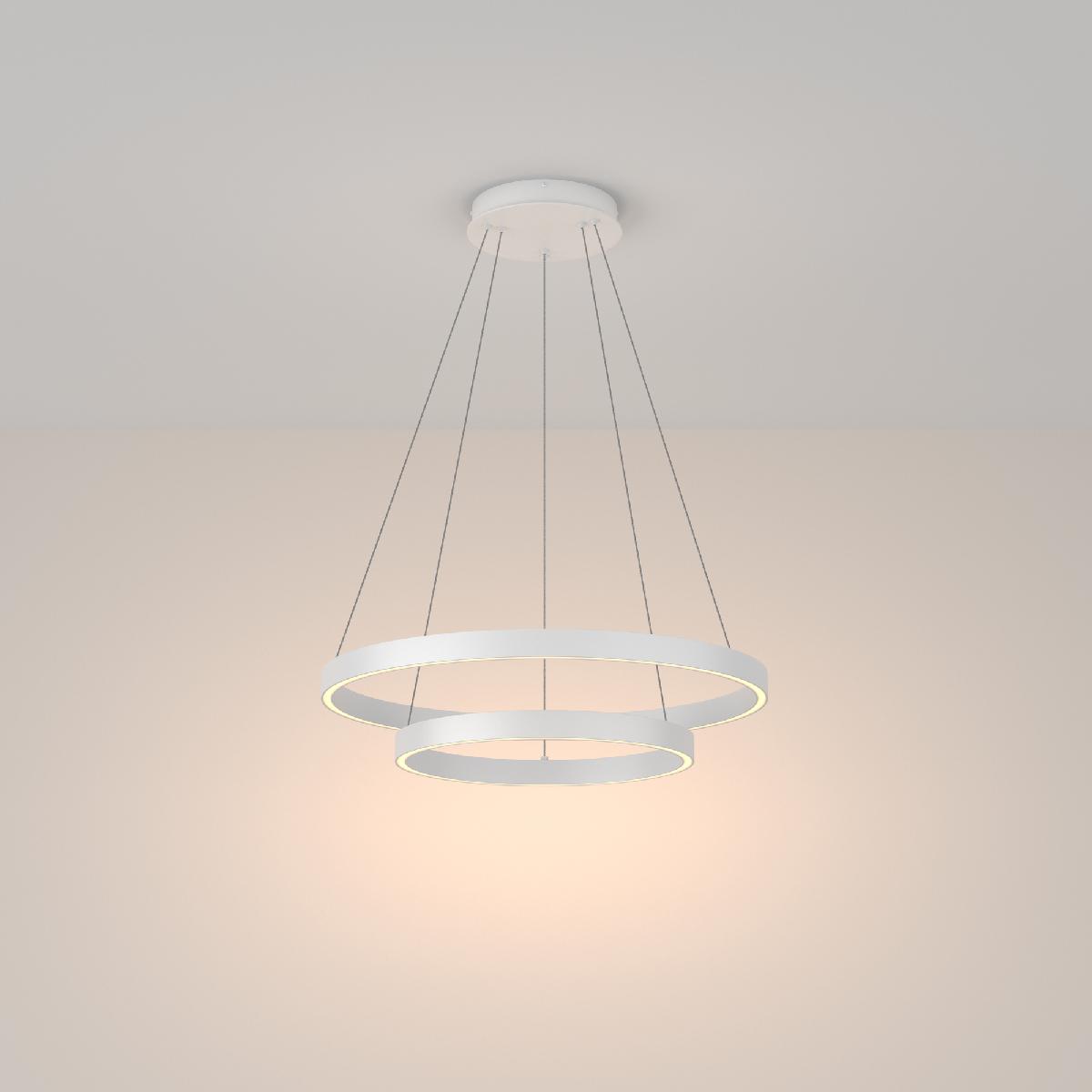 Представляем вам подвесной светодиодный светильник Maytoni Rim MOD058PL-L55W3K, который идеально впишется в современный интерьер вашей гостиной. Этот светильник обладает рядом преимуществ, которые удовлетворят самых требовательных покупателей. С яркостью 3500 люмен и мощностью 61 Вт, этот светильник обеспечивает достаточное освещение для комфортного пребывания в помещении. Он имеет светодиодные лампы, которые не только являются энергоэффективными, но и имеют повышенный срок службы, экономя ваши деньги на замене ламп. Дизайн этого светильника выполнен в стильном и современном обрамлении из алюминия, покрашенного в белый цвет. Его форма плафона представляет собой изящное кольцо, которое дополнительно подчеркивает современность и элегантность светильника. Несомненным преимуществом модели Maytoni Rim MOD058PL-L55W3K является возможность регулировки длины подвеса до 1100 мм, что позволяет установить его даже на натяжные потолки. Кроме того, светильник комплектуется двумя плафонами, направленными вниз, обеспечивая равномерное освещение в гостиной. Хотите уютную и теплую атмосферу? Выбирайте этот светильник с цветом свечения теплого белого, который создаст идеальное освещение для вечерних посиделок или романтического ужина. Maytoni Rim MOD058PL-L55W3K - надежный и качественный светильник от известного производителя Maytoni, который дает 2 года гарантии на свой товар. Позвольте этому светильнику преобразить вашу гостиную и подарить вам стильную и комфортную обстановку.