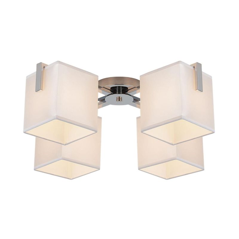 Потолочная люстра Citilux Стенли CL465141 наполняет спальню мягким, уютным светом. Четыре тканевых плафона бежевого оттенка направлены вниз, свет ложится ровно и комфортно, успокаивает и помогает настроиться на отдых. Квадратная форма и аккуратные пропорции подчеркивают современный характер модели, а хромированная арматура добавляет деликатный блеск без лишней яркости.