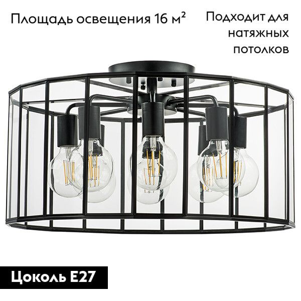 Потолочная люстра Lightstar Genni 798287 хорошо работает с лампами накаливания на стандартных цоколях E27. При желании можно выбрать теплый или нейтральный свет, ориентируясь на задачи комнаты. Один общий плафон объединяет источники, свет распределяется равномерно и без резких бликов.