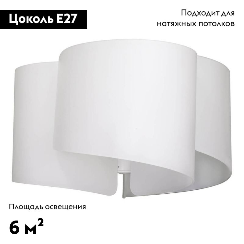 Диаметр 460 мм и высота 290 мм делают модель удобной для комнат со стандартными потолками. Площадь освещения до 6 м² помогает осветить компактную кухню или уютный уголок в квартире. Потолочная установка экономит пространство, а конструкция подходит для натяжных потолков.