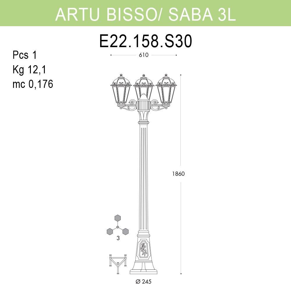 Уличный фонарь Fumagalli Artu Bisso/Saba 3L K22.158.S30.BYF1R